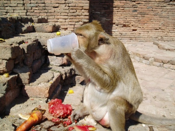 На глазах у туристов обезьяны подбираются к кушаньям скромно. Чуть позже макаки раскрепощаются и жадно пожирают всё, что съедобно. Еду они с удовольствием запивают колой из железных банок. Самые голодные обезъяны устраивают погони за теми, кто сумел заполучить огромный кусок дыни, или другого явства. А самые сытые обезьяны от счастья начинают заниматься любовью прямо на обеденном столе, фотографироваться на головах у туристов и кидаться в них едой и пустыми банками. Но люди к такому поведению макак готовы.