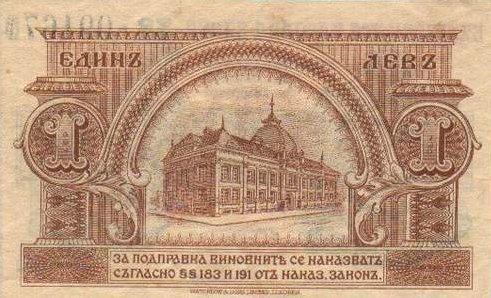 „Это банкнота, которая появилась после Балканских войн 1912-1913 гг., когда Болгария пережила свой первый финансовый кризис. Пытаясь избежать инфляции, правительство изъяло из обращения монеты, большая часть которых – серебряные, и впервые отпечатало банкноту номиналом в 1 лев. В народе ее называли „марка”, так как была произведена в Германии. В сущности, эта банкнота положила начало традиции. Несколько последующих эмиссий содержали однолевовую банкноту, в том числе и при последней денежной реформе в Болгарии с 1999 года, известной, как деноминация. На данный момент в стране используется монета номиналом в 1 лев”.